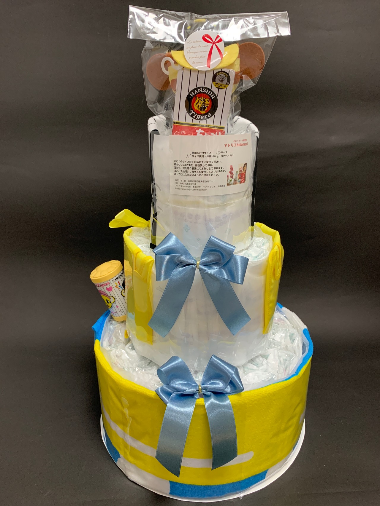 「3段のカタイガースおむつケーキ」とご連絡いただければ
